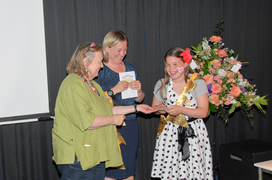 Tegan Farquharson being presented with her Ambassador Aid sash by Councillor Ros Lester