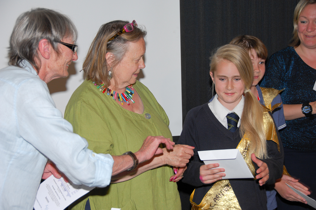 Alice Walkey being presented with her prize by Councillor Ros Lester